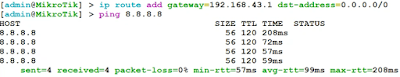 Hubungkan router ke internet menggunakan perintah dibawah.